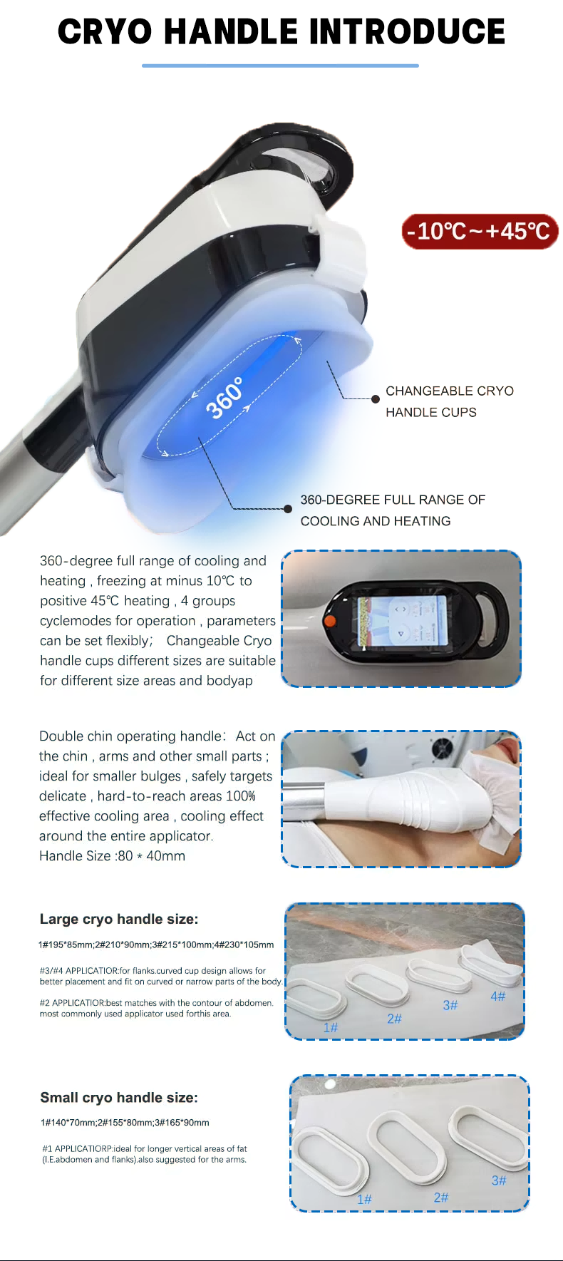 При воздействии низкой температуры на жировые клетки жировые клетки подвергаются апоптозу, а затем эти апоптозные жировые клетки естественным образом метаболизируются и выводятся из организма человека. Он использует нехирургический метод с четырьмя ручками, которые могут работать одновременно, чередуя холод и тепло. Температура может достигать -10°C в течение 1 минуты после охлаждения, что позволяет целенаправленно уменьшить локальный жир. Он также отличается коротким периодом восстановления, отсутствием необходимости в анестезии и низкой тенденцией к восстановлению.